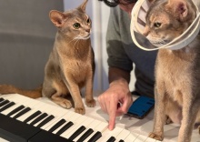 聞き慣れない音にイカ耳の猫たち 2026年03月06日 昨日紹介た電子ピアノを、ピアノ経験のないだんなさまが触れてみた。なぜか、猫たちに囲まれた。聞き慣れない音に警戒しているのかな⁇\この変な音はパパが出してるでちか?/\パパ、狂ったでちか?/いささか、心配そうな顔でパパの側に居座るわか坊。そこにいたら、ピア