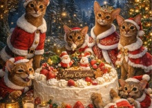 7ニャンから、メリークリスニャス⭐︎ 2025年12月24日 今日はクリスマスイブですね🎄皆さんどうお過ごしですか?あいにくのお天気だし寒いけど、体調に気をつけてくださいね。猫たちのクリスマスカードを生成AIで作ってみました。7にゃんから、メリークリスマス⭐︎どれが誰だか分かりますかー?夜に正解を発表しまーす♪携帯の待