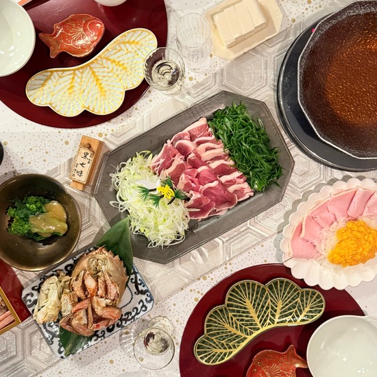 お正月2日の夜は、新年初の温泉湯豆腐♨️ 2026年01月05日 お正月2日の夜ごはんです。おせち料理と一緒にいただいたのは…温泉湯豆腐ー✨温泉湯豆腐が大好きすぎて、お正月のメニューにしちゃいました♨️お魚を入れたかったけど、年末に見つからなかったので、名古屋コーチンにしました。野菜は、お重に入れてお正月な雰囲気に。お節