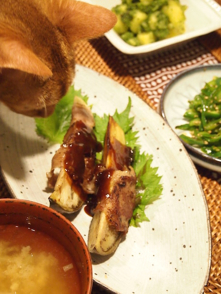 肉巻きなす…お肉が致命的に足りずに負けてないんですけどね(T▽T;)