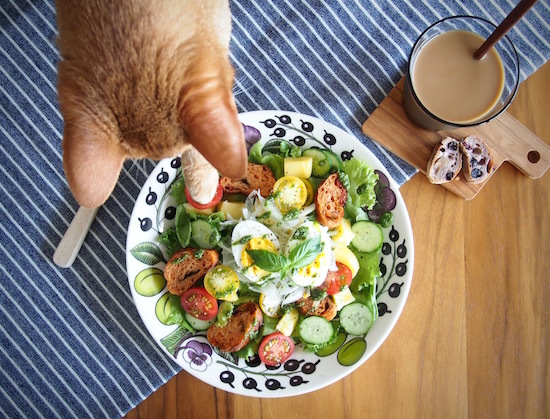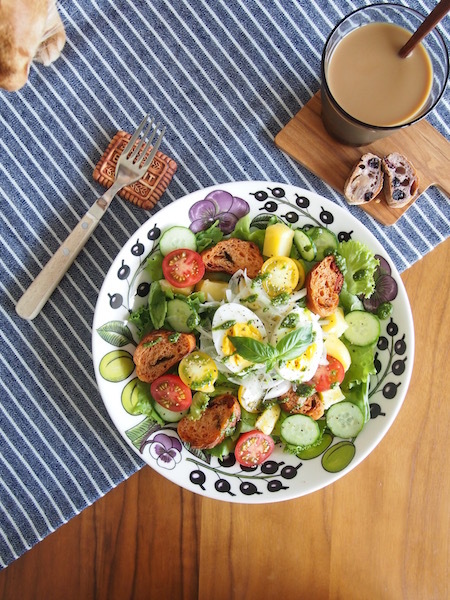 サラダに、適当にパンを入れるだけだからすごく簡単だし器も1つで済むし:*:・( ̄∀ ̄)・:*: