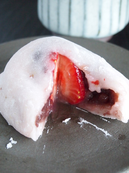 柔らかいお餅の中に、甘酸っぱい苺と餡が入ってる♪