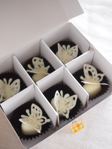 蝶々のチョコは個別に仕切りを作って箱詰めしました
