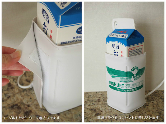 ③ヨーグルト発酵器を牛乳に巻きつけて(腹巻みたい)