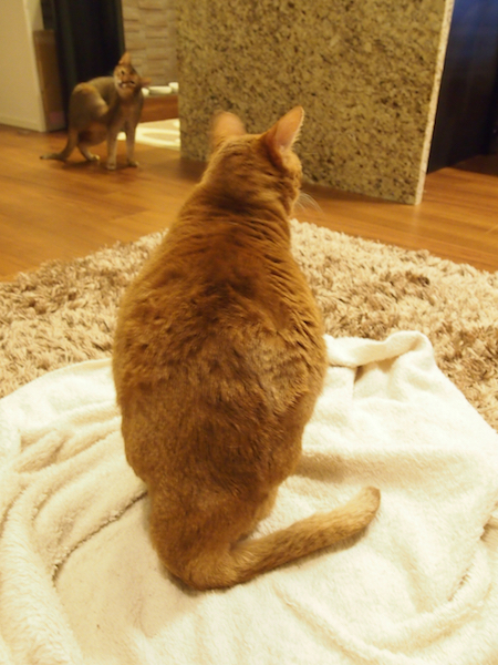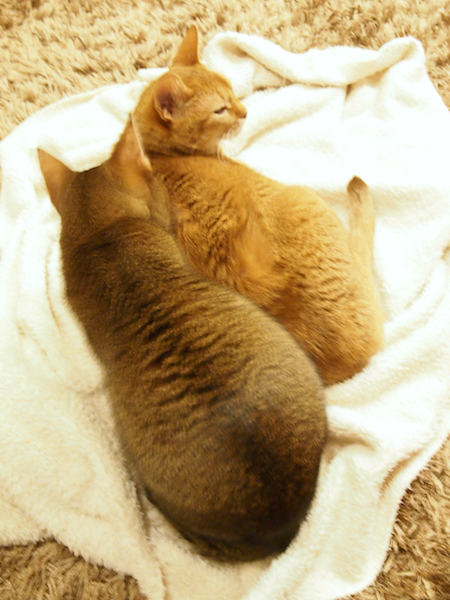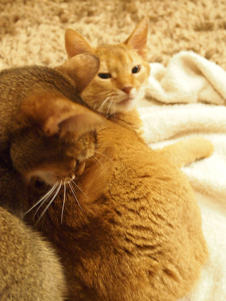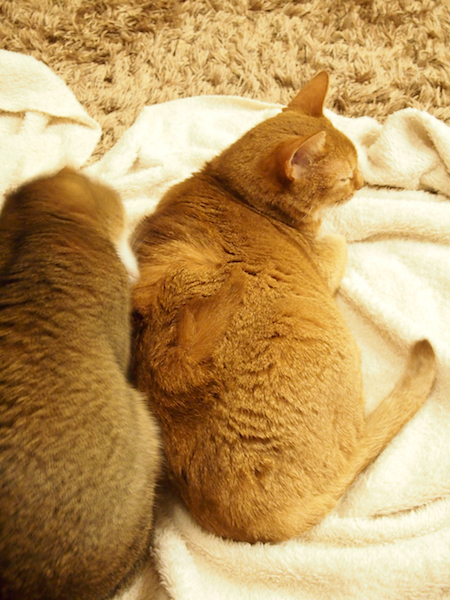 私の股の間に2匹揃って居座るのが、最近のニャンブームです
