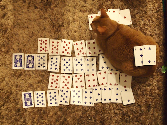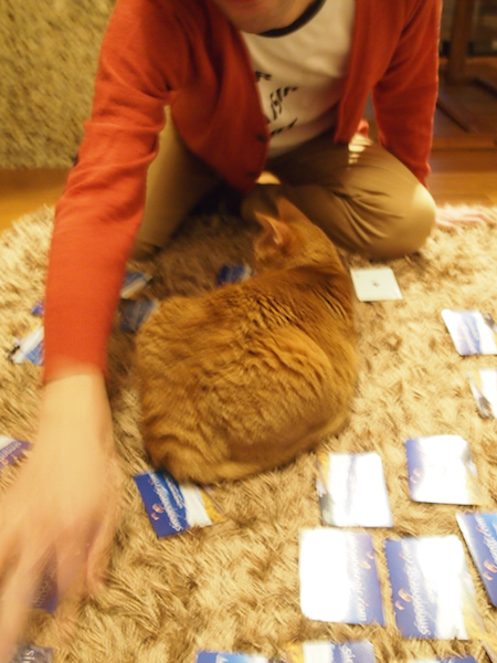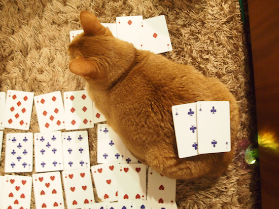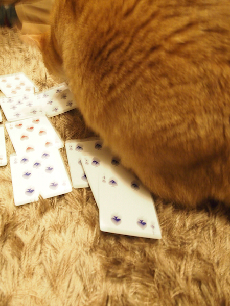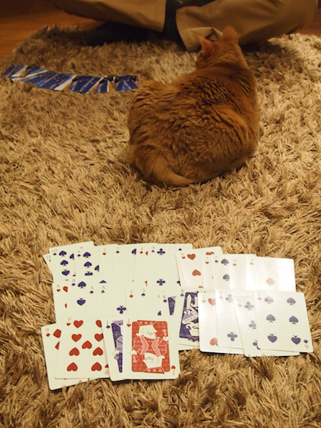 トランプを広げたらどっしりと居座っちゃうんですー(TωT)