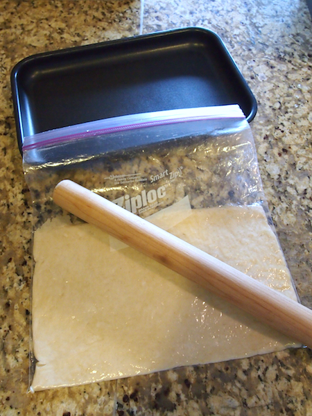 袋に入れたまま麺棒で伸ばせるので