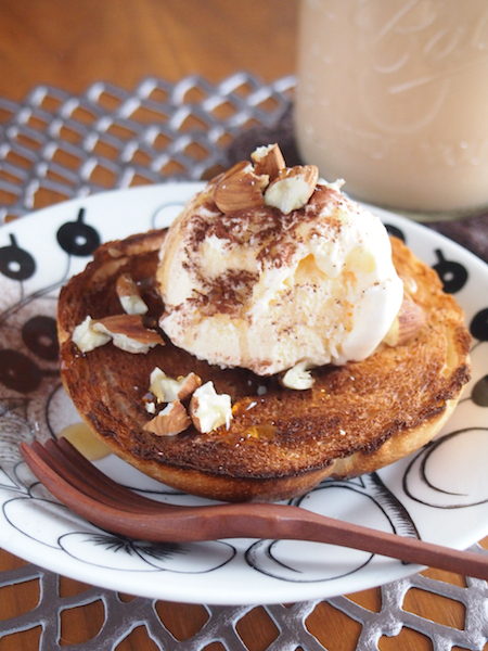 ほっこり温かいベーグルに、冷たいアイスを乗せたらとっても美味しかったー