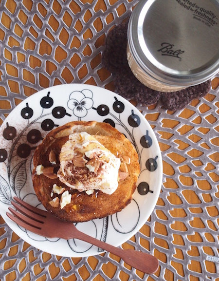 朝ごはんに半分食べて残ったベーグルを焼いて