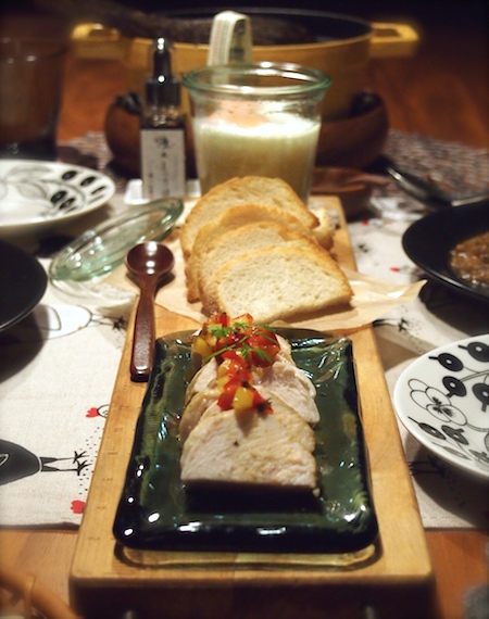 鶏ハムもこれが最後、パプリカソースと燻製醤油とかかけて