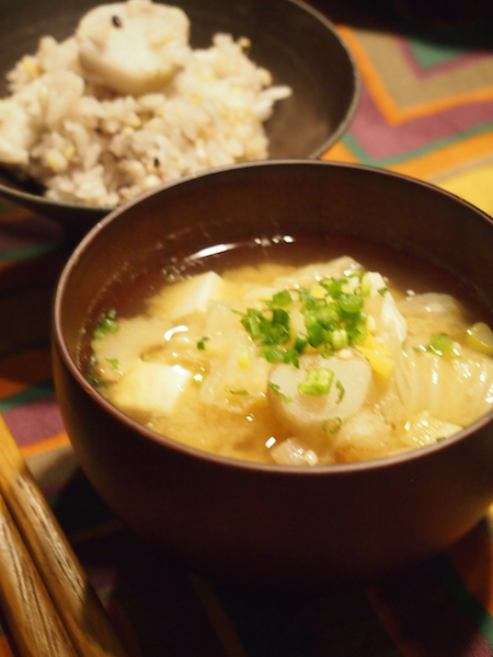 お味噌汁はお野菜たっぷりにしました(ピントどこ??)