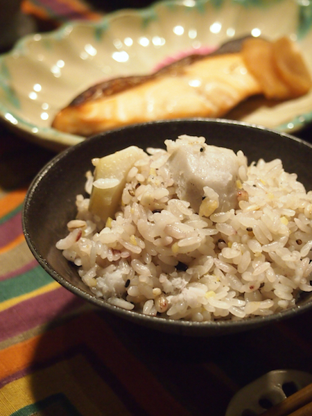 里芋と、蓮根と、人参をにstaubで炊いたもの