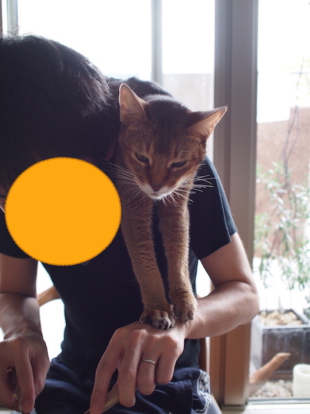だんなさまの肩に乗っかって、食事に参加するスタイルでした