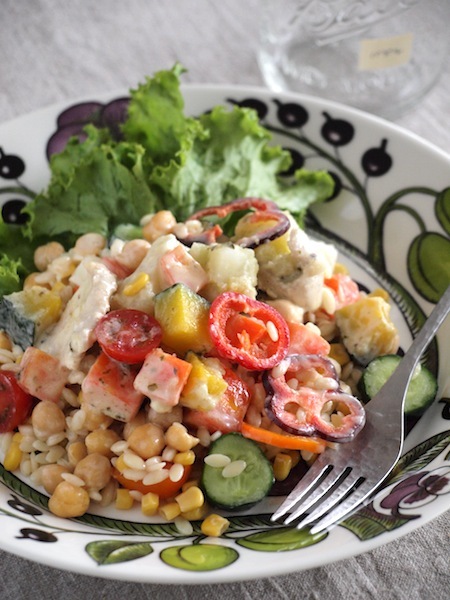 入れる具材を微妙に変えたり、ドレッシングにひと味足してできた