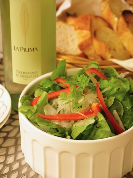 リンゴ酢とアマニ油と塩こしょうのドレッシングで