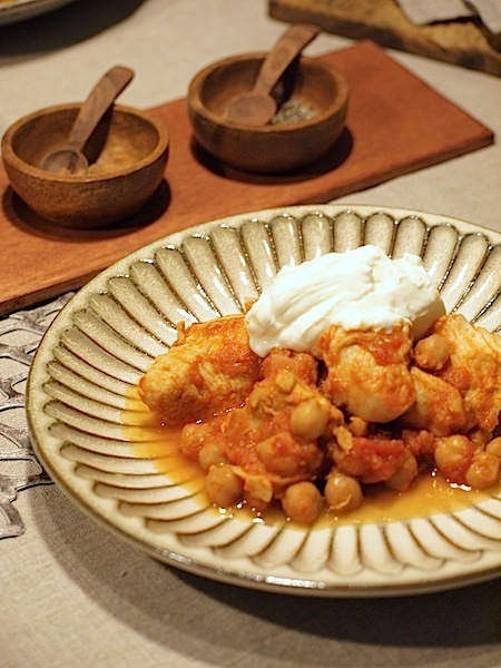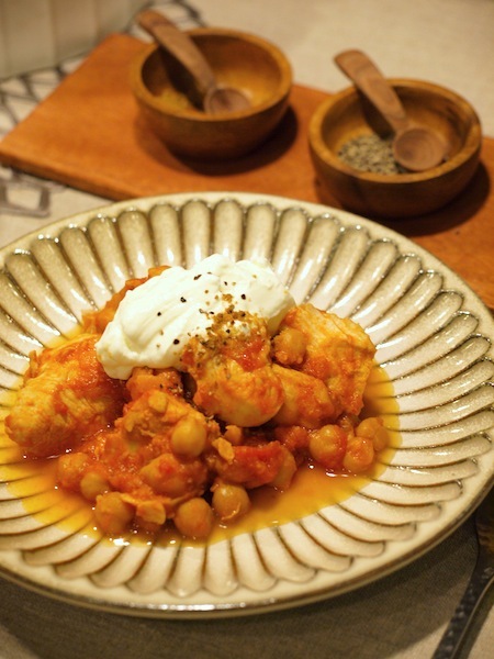 「鶏とヒヨコマメのトマト煮マスカルポーネ添え」( byちきむんきっちんさん )