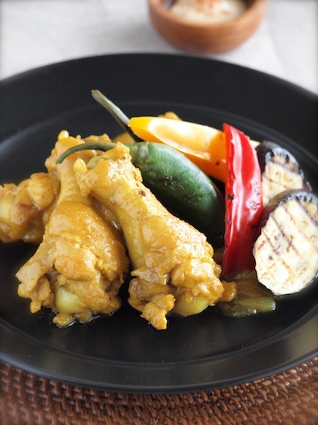 照り照りのチキンドラムを、カレー風味でいかがですかー