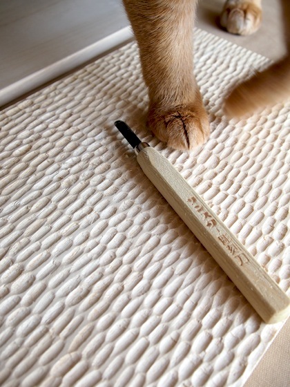 昨日はせっせと彫刻刀で掘り掘りしてました