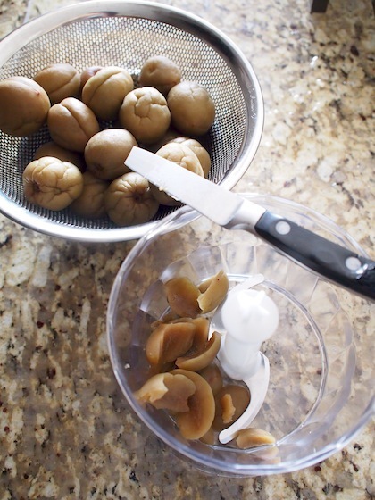 青梅の実は、包丁でそいで種から外して