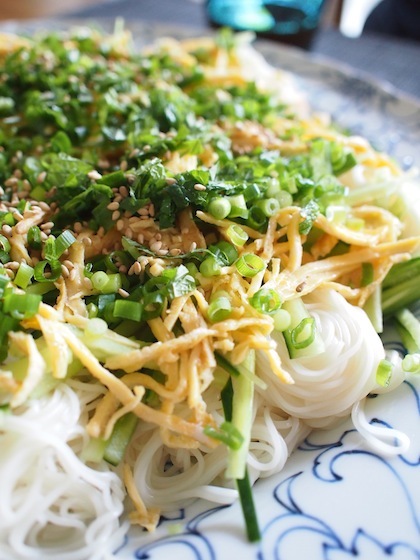 錦糸卵、キュウリ、青紫蘇、胡麻、ねぎ