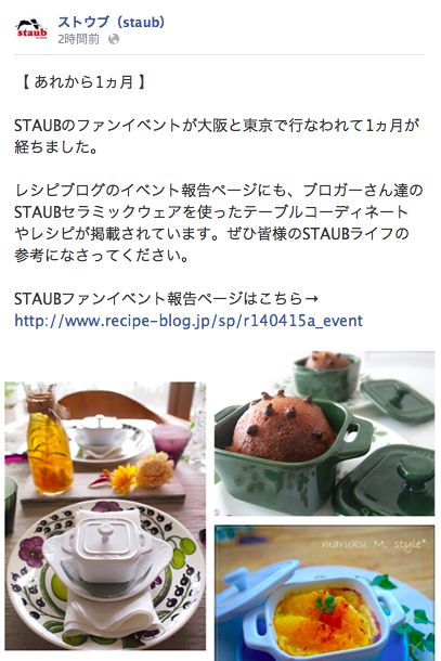 staubのFacebookのページに