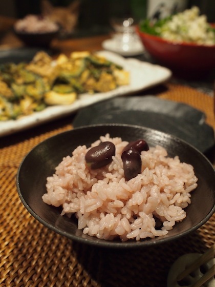 「赤い色の豆ご飯ができますよ」