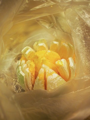 ④ 玉ねぎの1枚1枚に行き渡るように、手で丁寧に種をまぶします