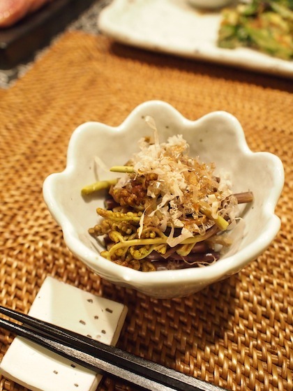 蕨は切って鰹節をかけてポン酢をかけただけ