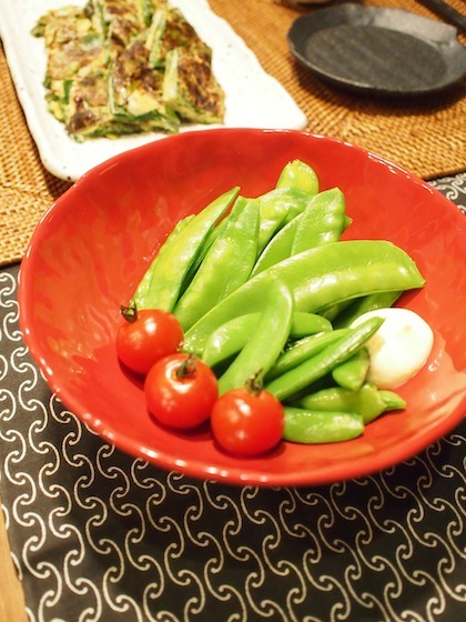 新鮮なお野菜やら山菜やらだけの簡単な夜ご飯にしちゃいました♪