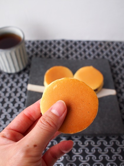 一口サイズのどら焼きを、おやつに作りました