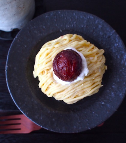 あとは、栗のクリームを綺麗に絞ったらできあがりです♪