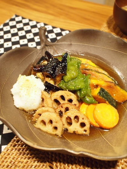 冷蔵庫整理で、残ってた野菜を揚げ浸しにしましたー