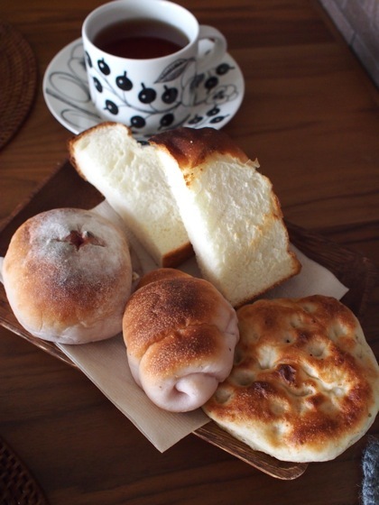 手前真ん中の、桜芋ペーストを練り込んだ「湯ごねロールパン」は