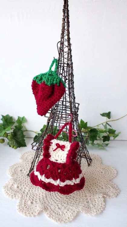 ついでに、もういっこ編んでみたかった立体的なイチゴ型も