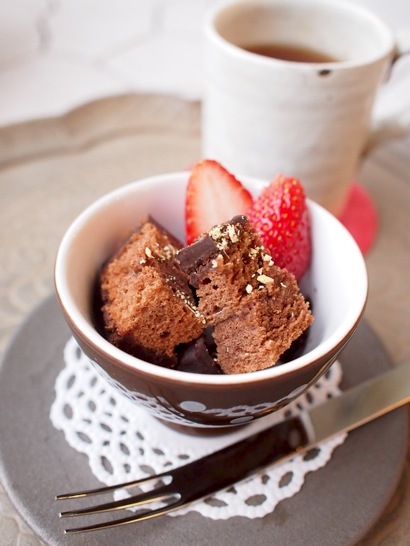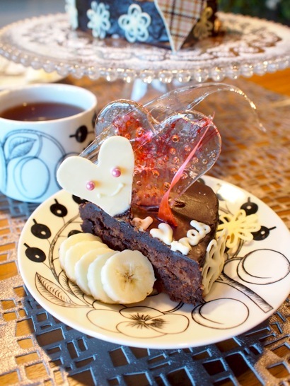今日は、バレンタインのケーキの残りにかけておやつに食べました♪