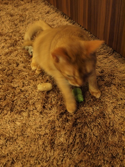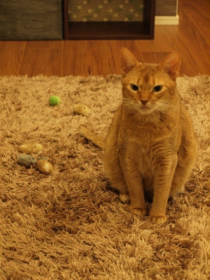 今朝起きたら、ひな子のおもちゃが私の枕に置いてありました