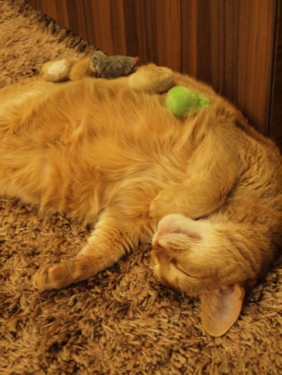 散らかしっ放しにしたおもちゃに囲まれて、スヤスヤ寝てましたので