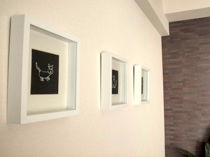 にゃんずの絵を描いてもらって、IKEAで買った額縁にそれぞれ入れました