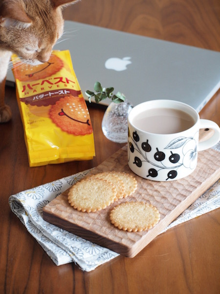 今日は、久々のお菓子を用意して、用意周到に作業を始めています♪