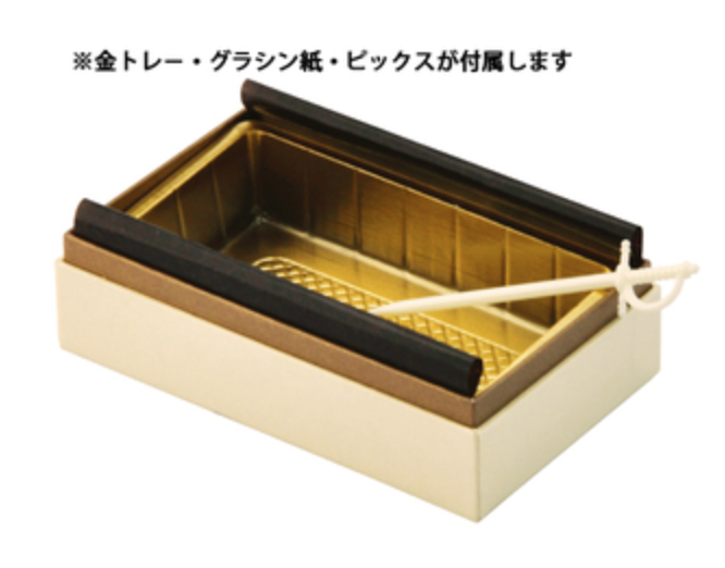 ボックスには、トレーとグラシン紙とピックも付いるので