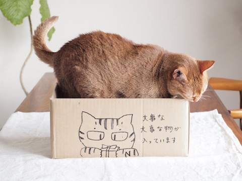 お馴染みの、ねこイラスト梱包で