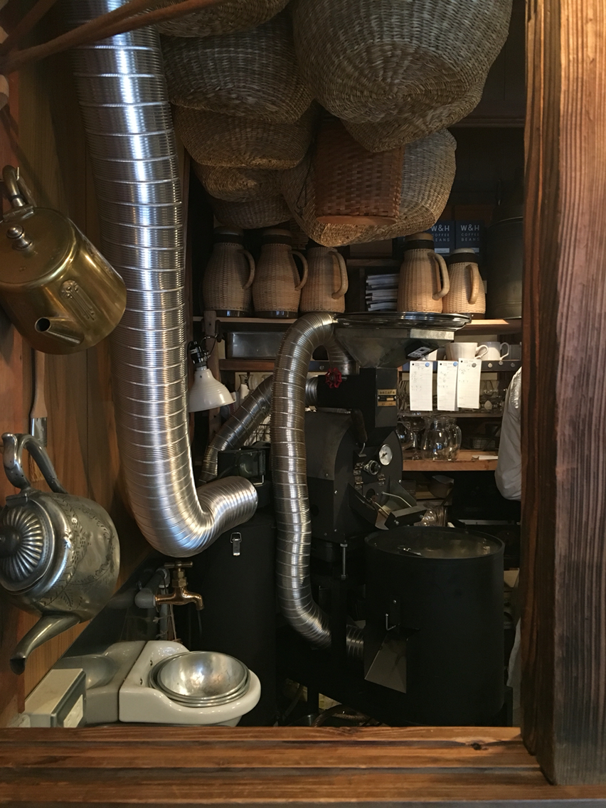 カウンターの向こうに見える、所狭しと置かれていた焙煎機らしきもの。