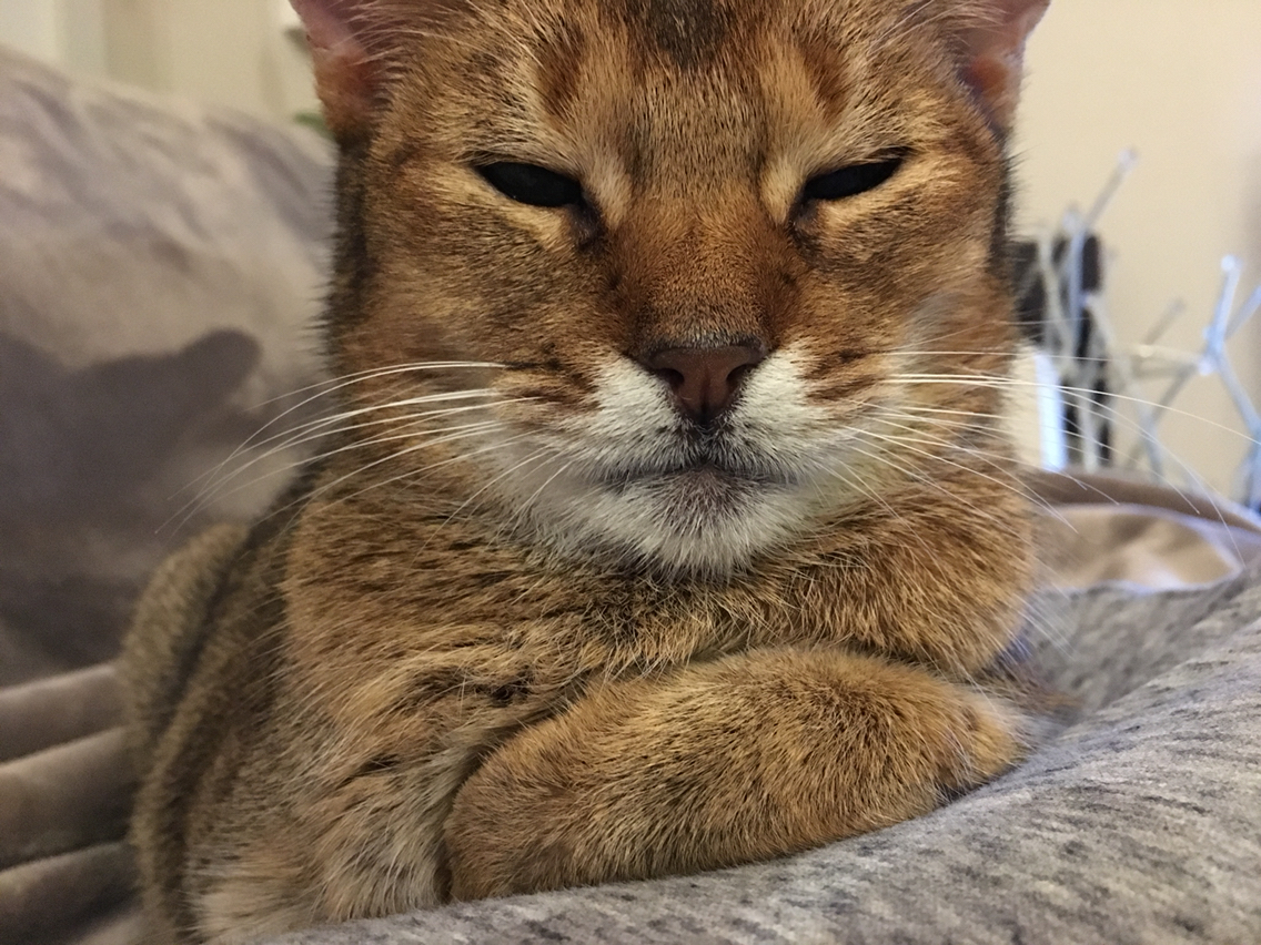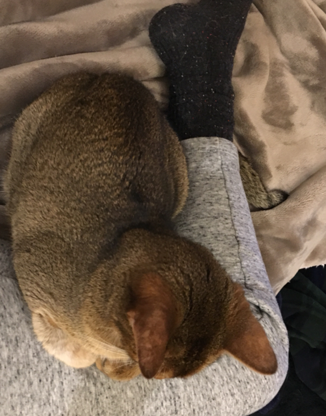 今朝は、ひな子が股の間に入って、ちび子が胸の上に乗っかってと、大にぎわいでしたー。