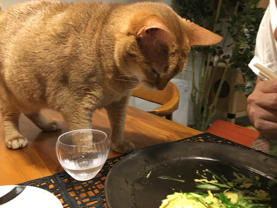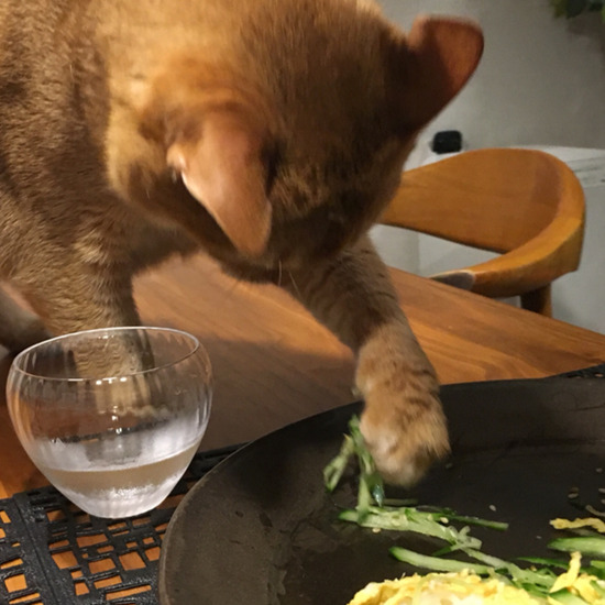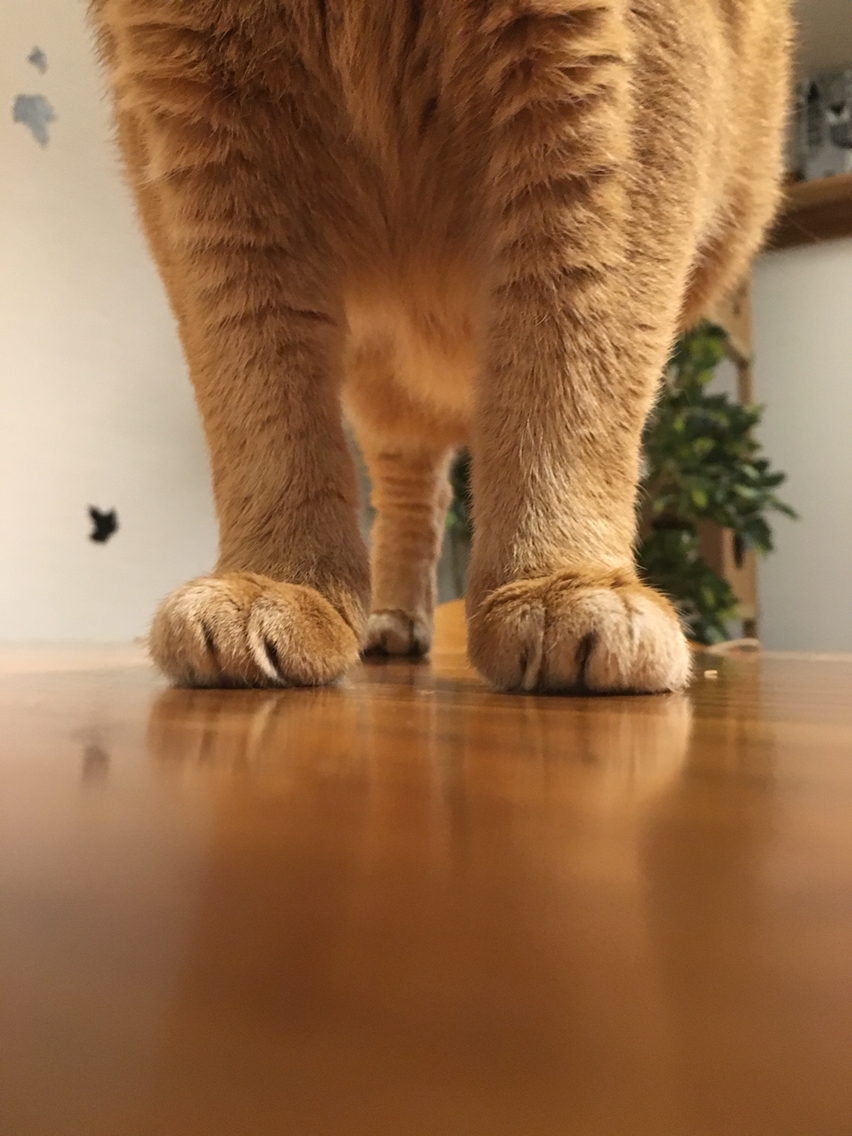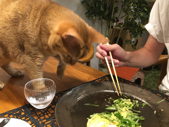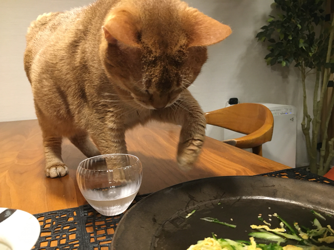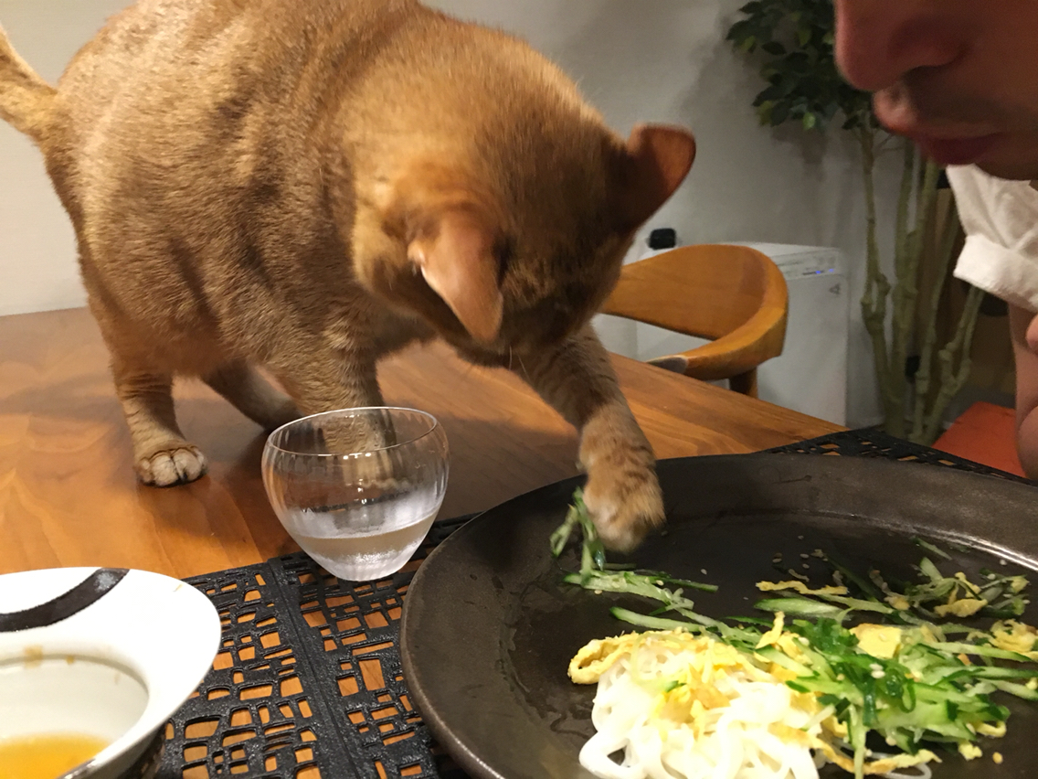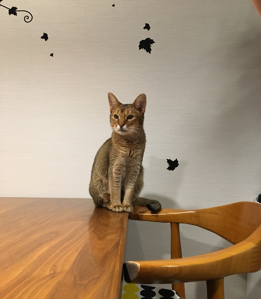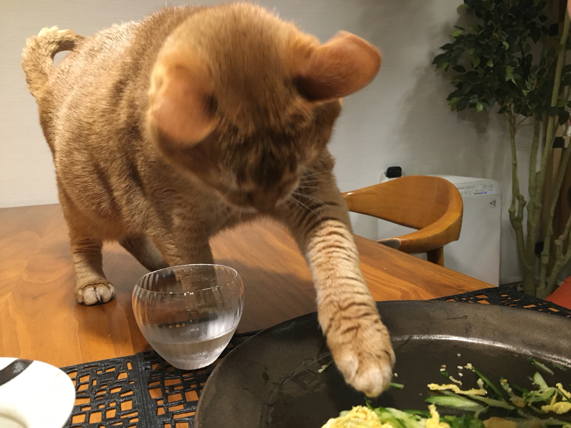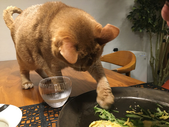 だんなさまのお皿の真横で、熱烈ビームを送るでぶっちょ