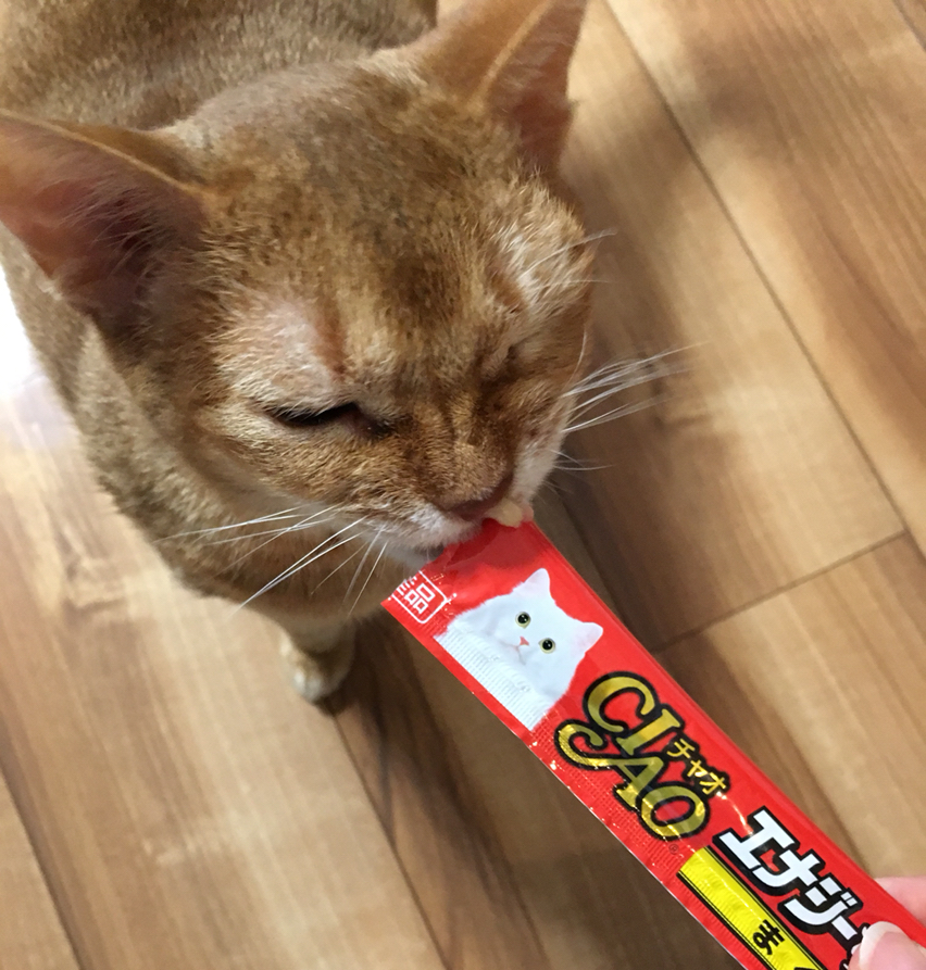ちゅーるの「エナジーちゅーる」というのを見つけたので、あげてみました。