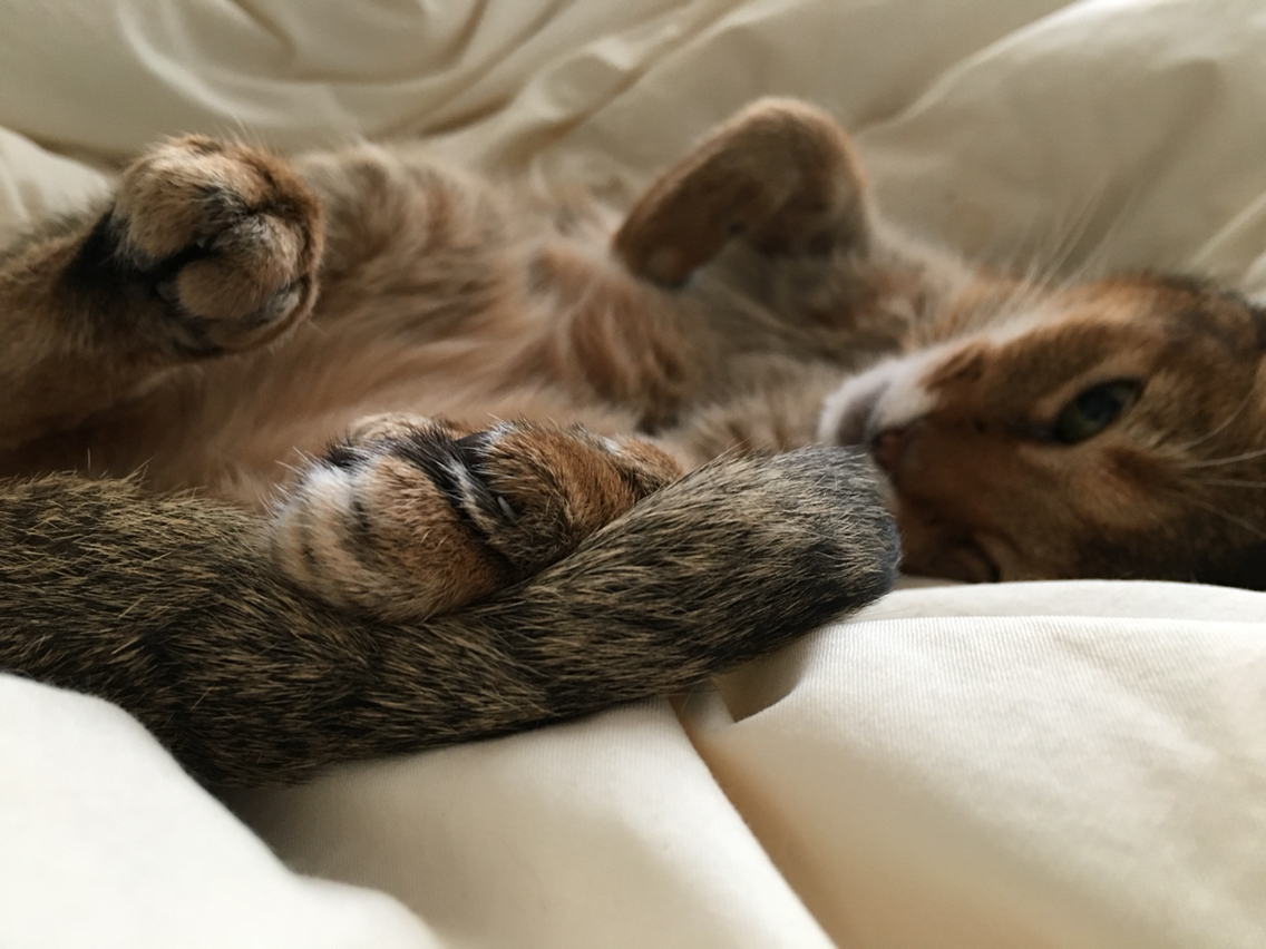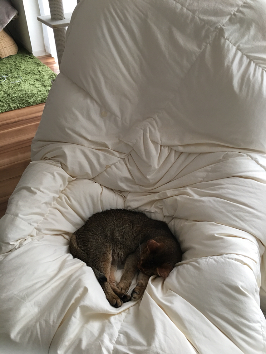 今日は天気いいですね!梅雨があけたように暑いです。チビ子ちゃんお布団ふかふかで気持ち良さそう♪
