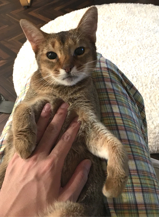 ちび子ちゃんのお膝の甘え顔、あの目で見られたらハートわしづかみされちゃいますねー。