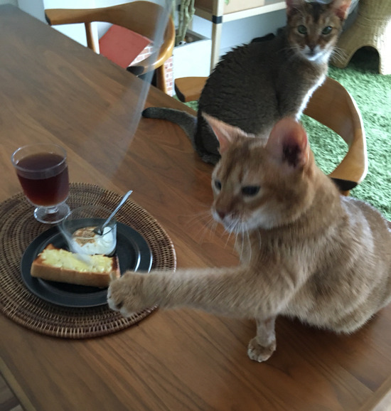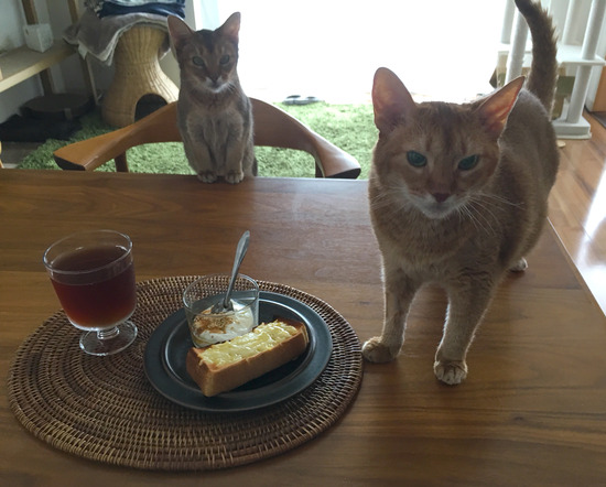 出張でだんなさまが不在のため、今朝は1人で2匹と戦わねければならない。