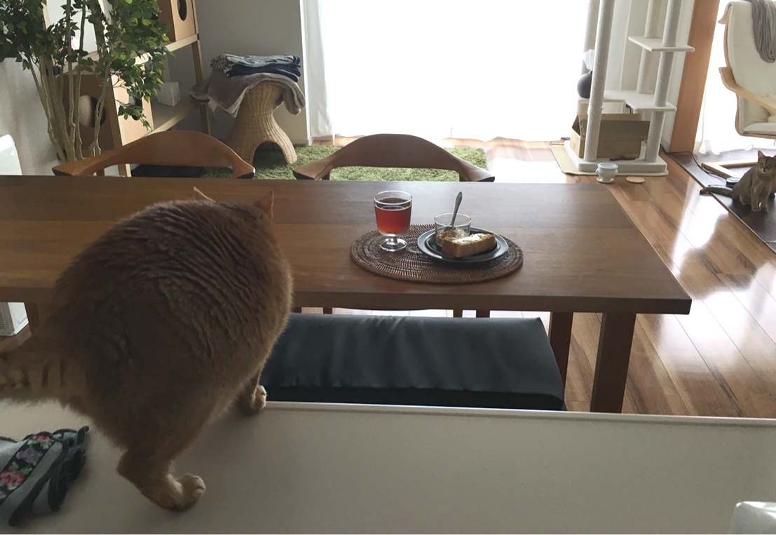 朝食の準備をしたいその場所を、ひなちゃんが右へ左へおおわらわ。
