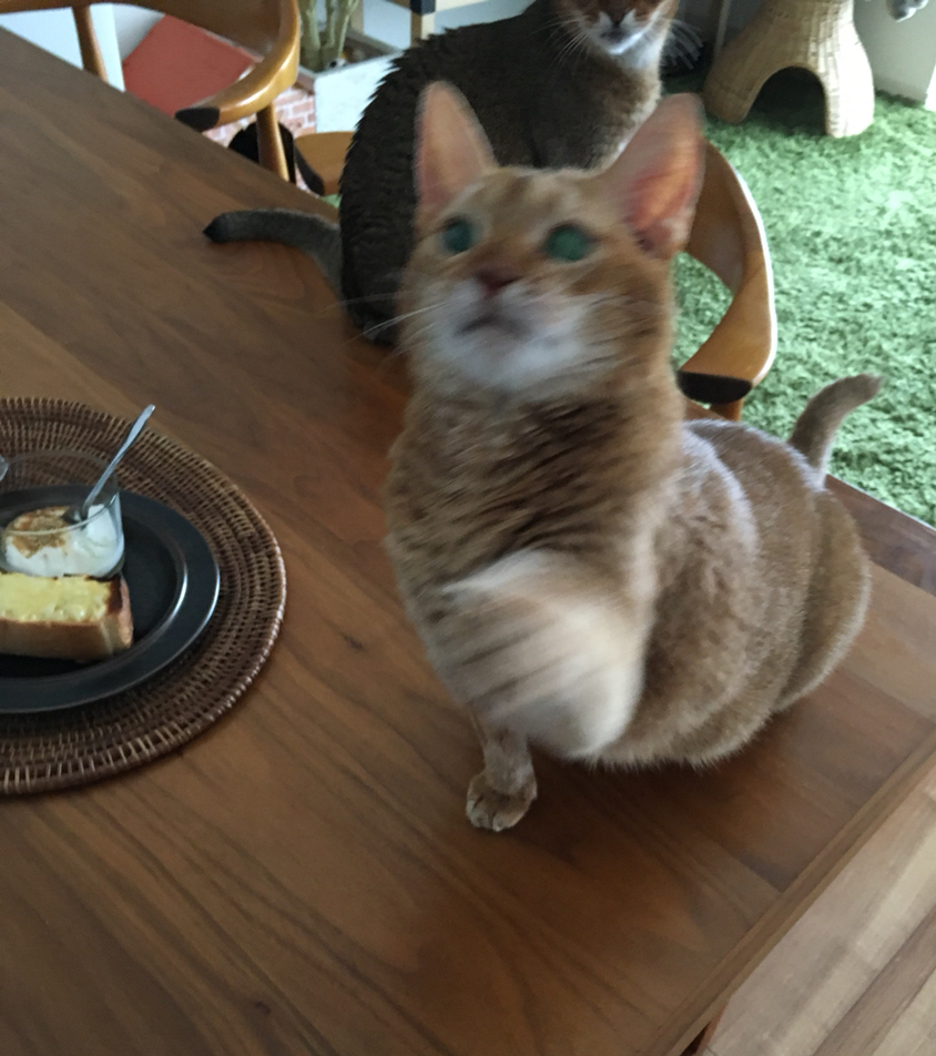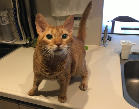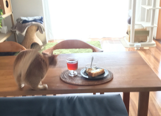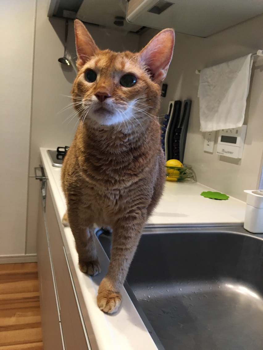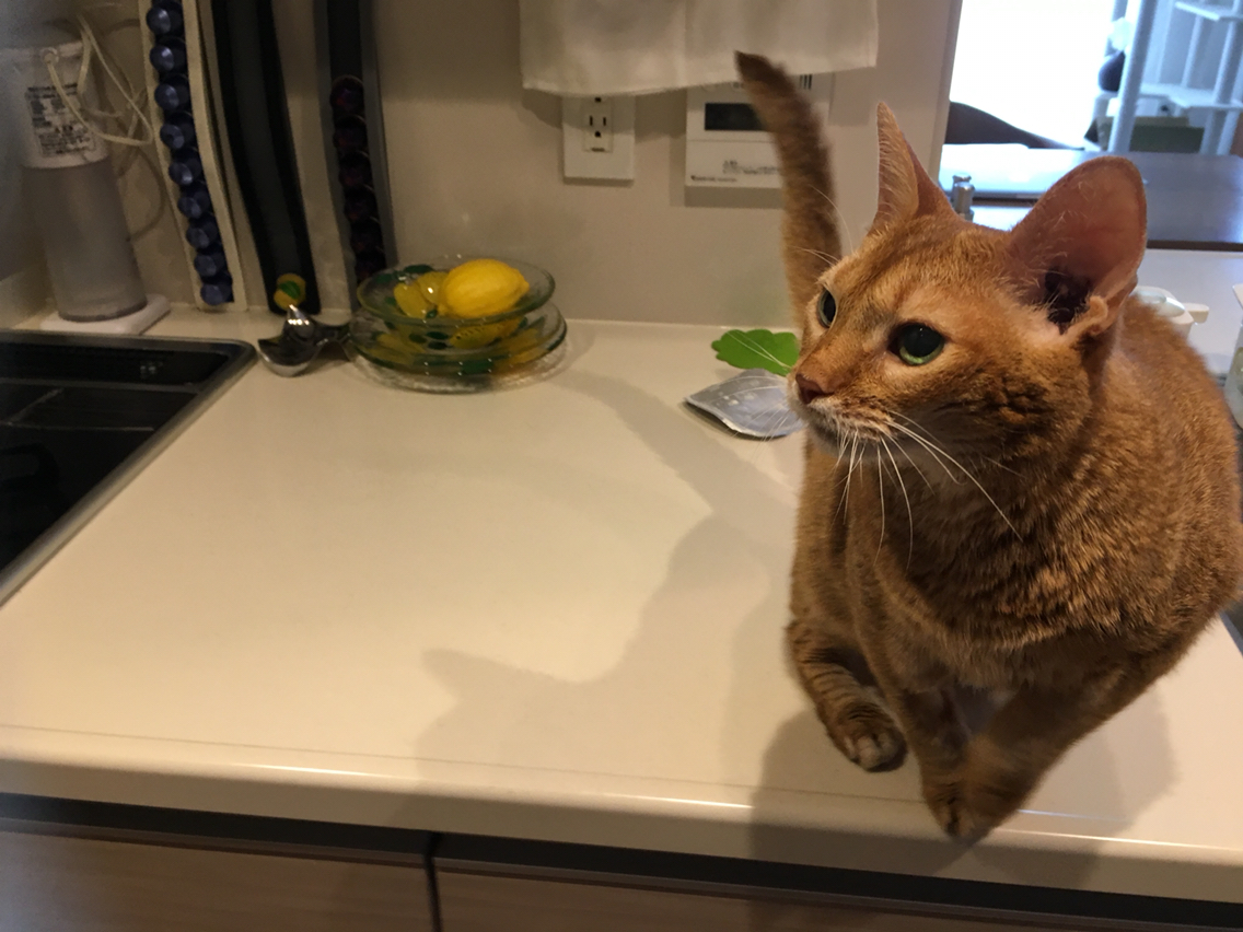 人間の朝ごはんの準備をしようとすると、慌ててキッチンにやってきました。